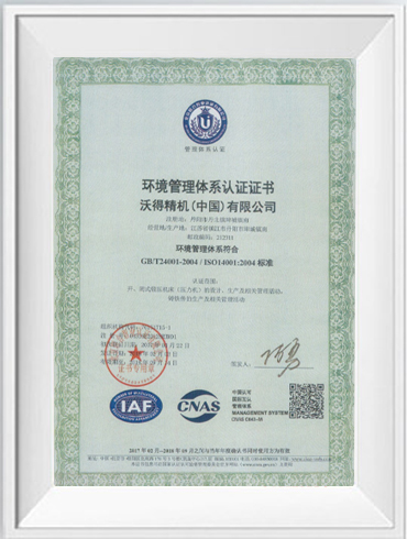 環境管理體系認證證書