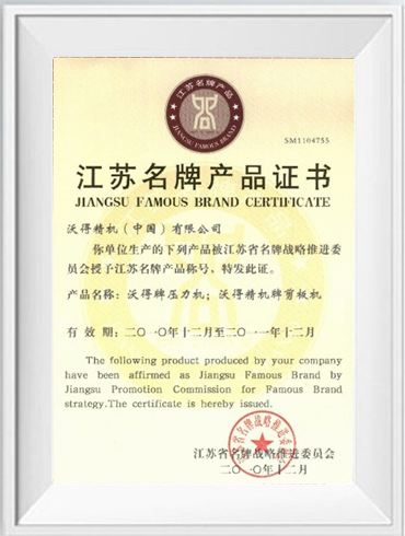 江蘇名牌產品證書