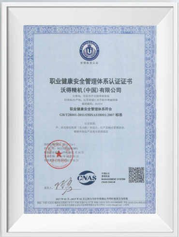 職業健康安全管理體系證書
